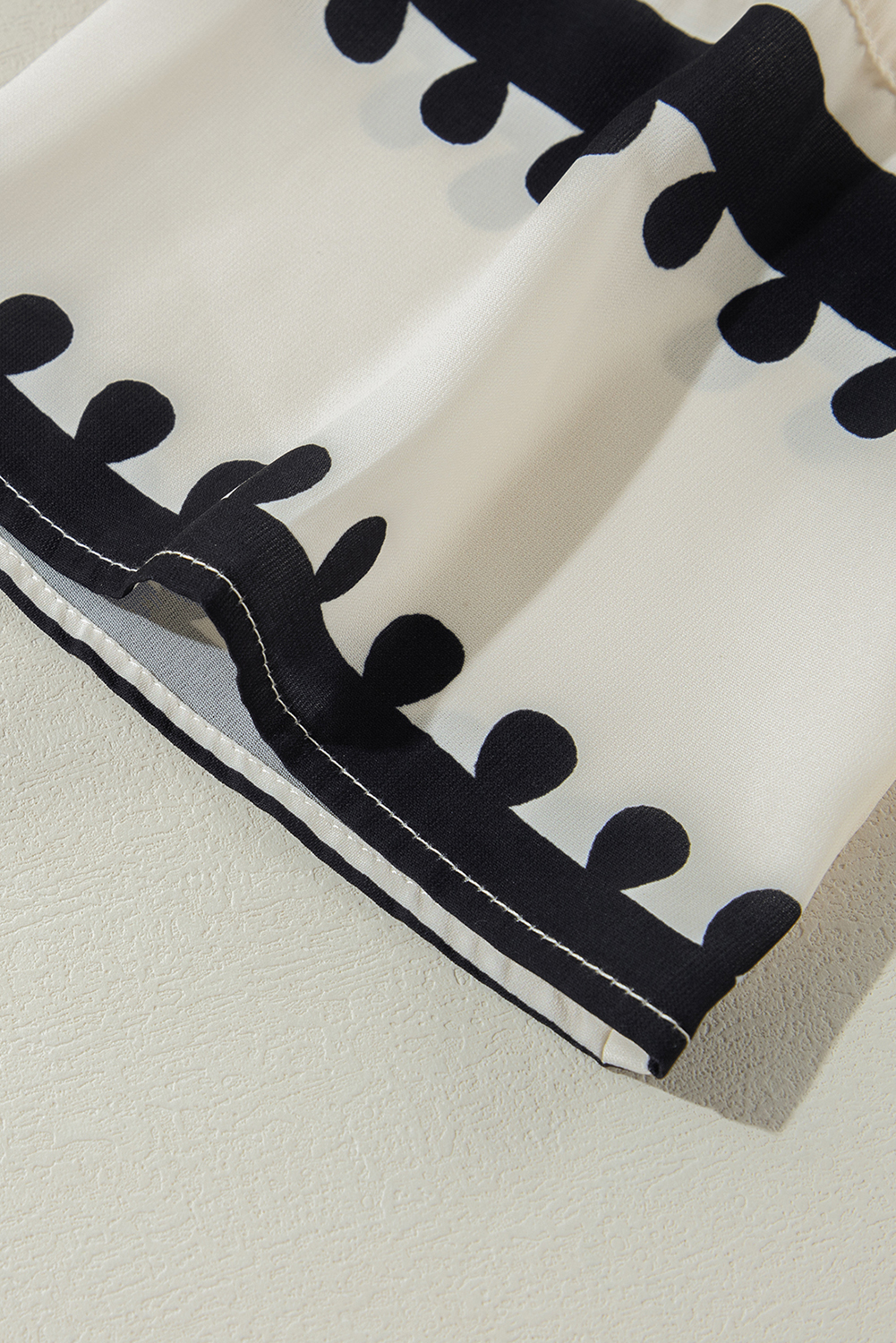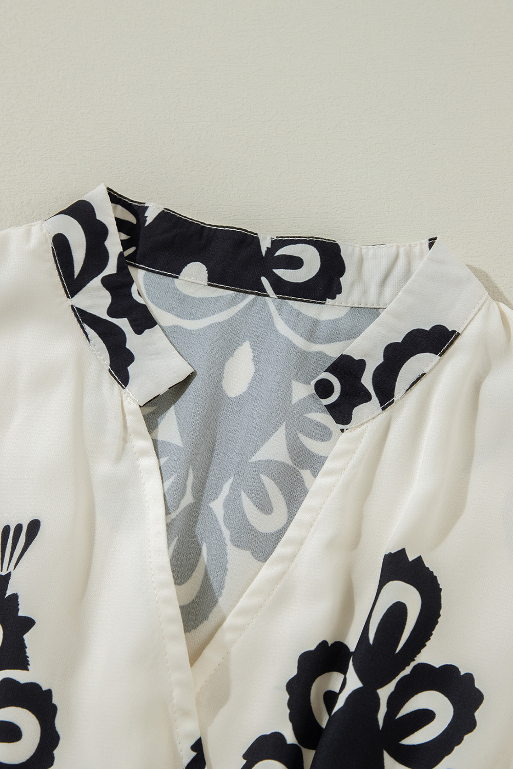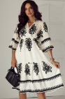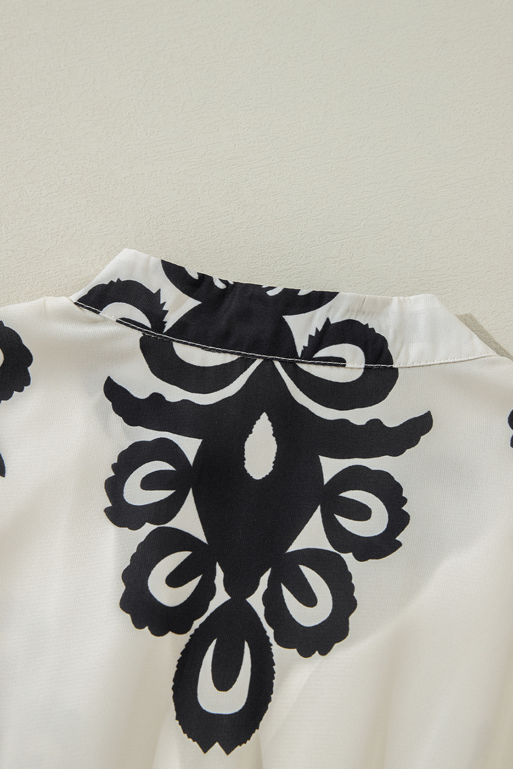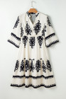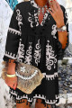 Abito longuette ampio con maniche a 3/4 con stampa geometrica occidentale beige