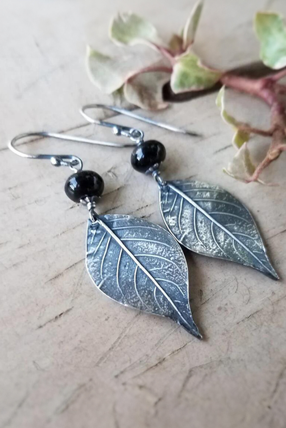 Orecchini pendenti con perline a forma di foglia vintage argentate