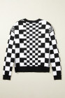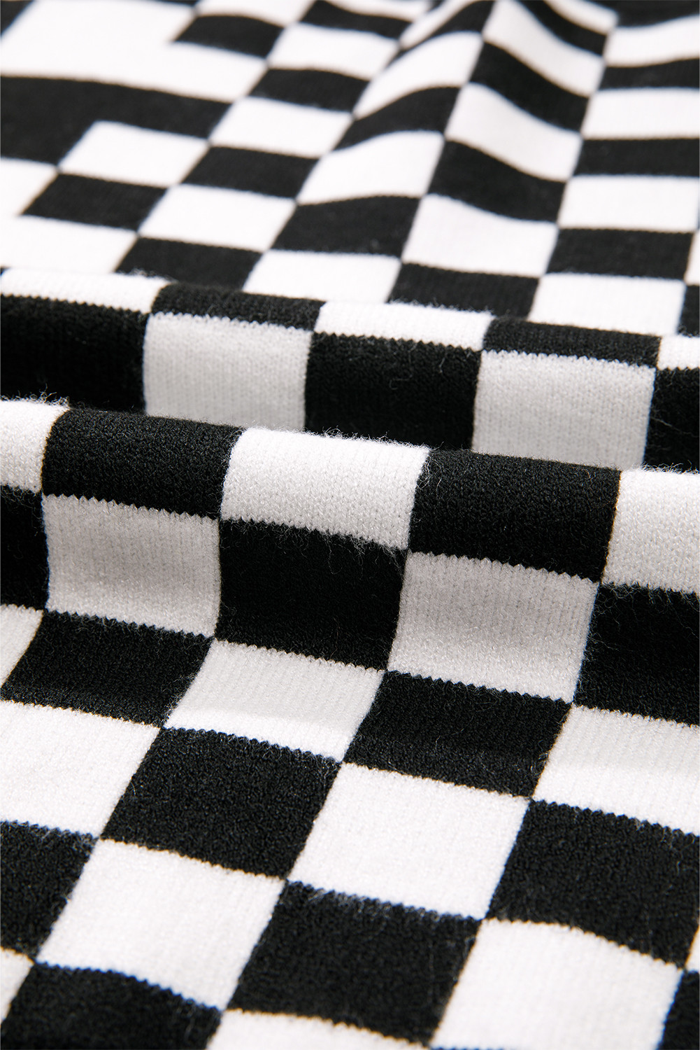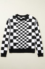 Maglione girocollo con stampa a quadri nera con spalle scoperte