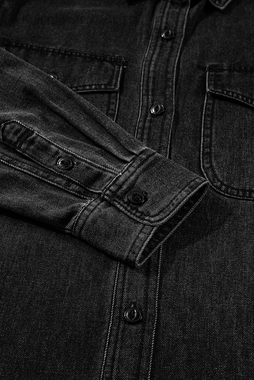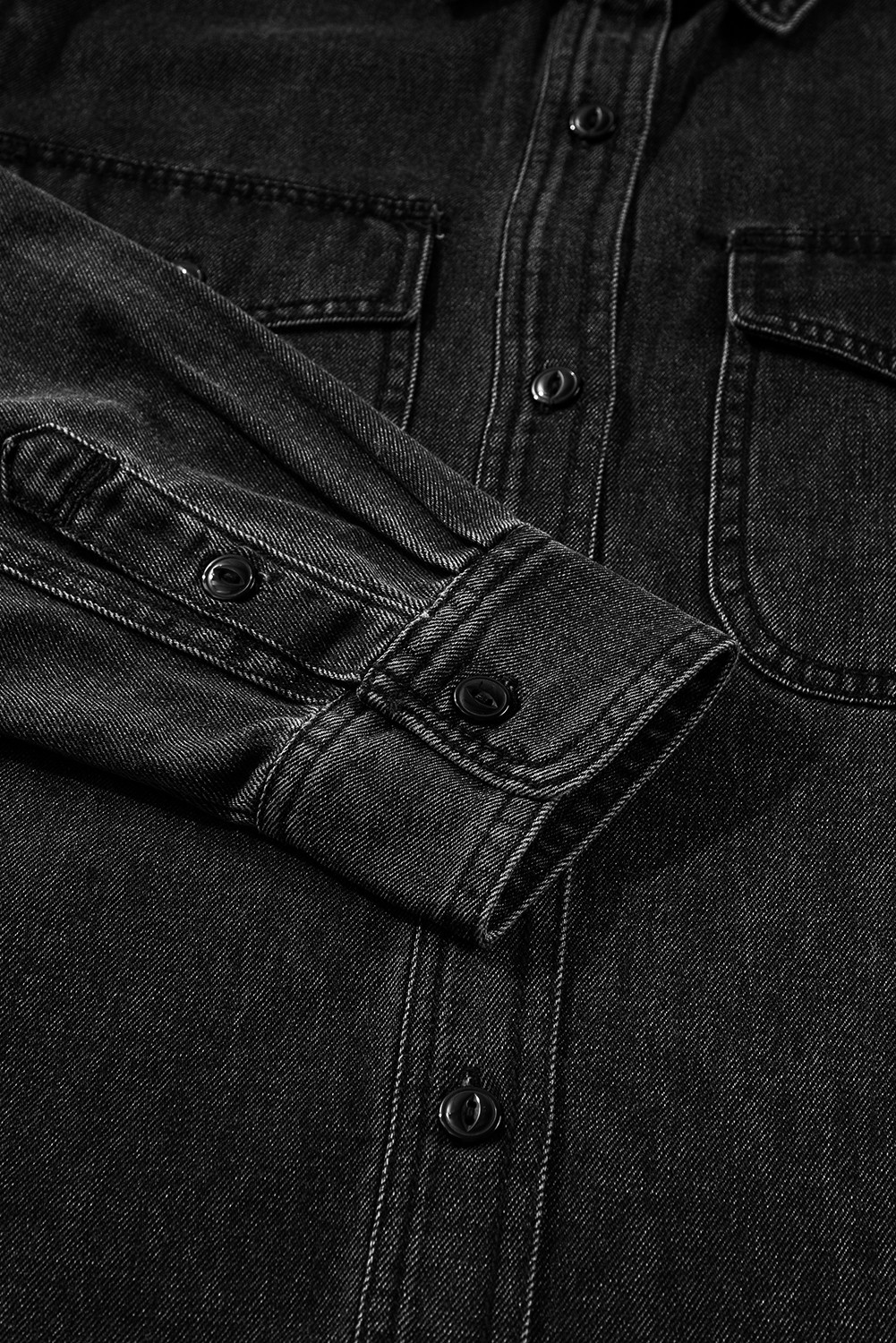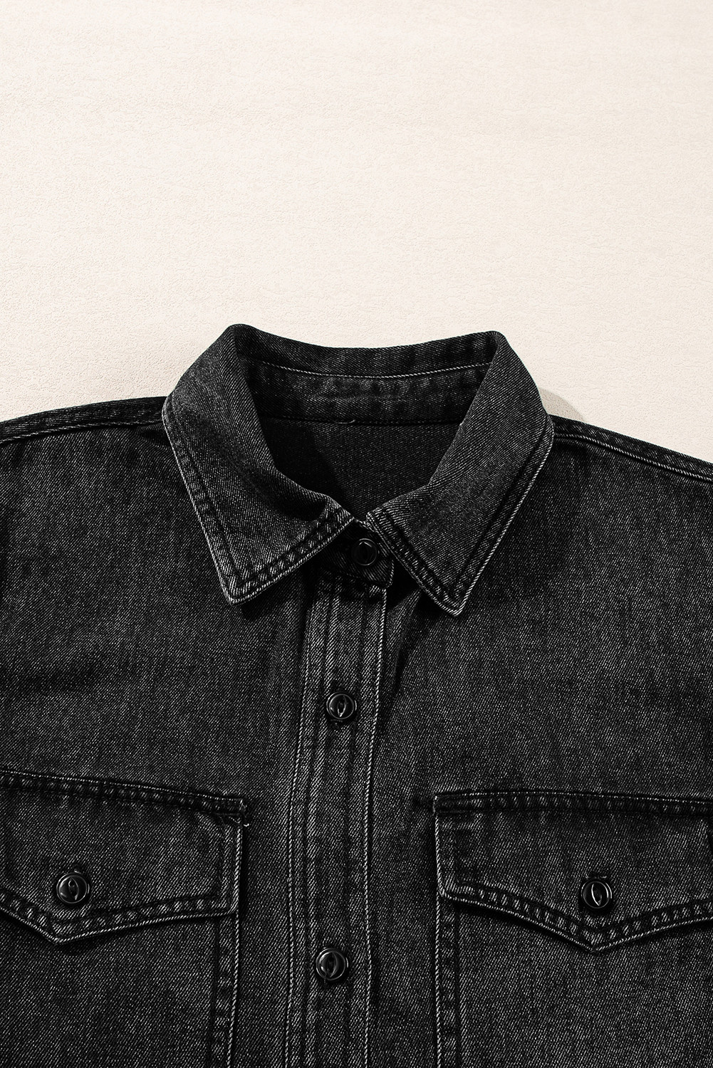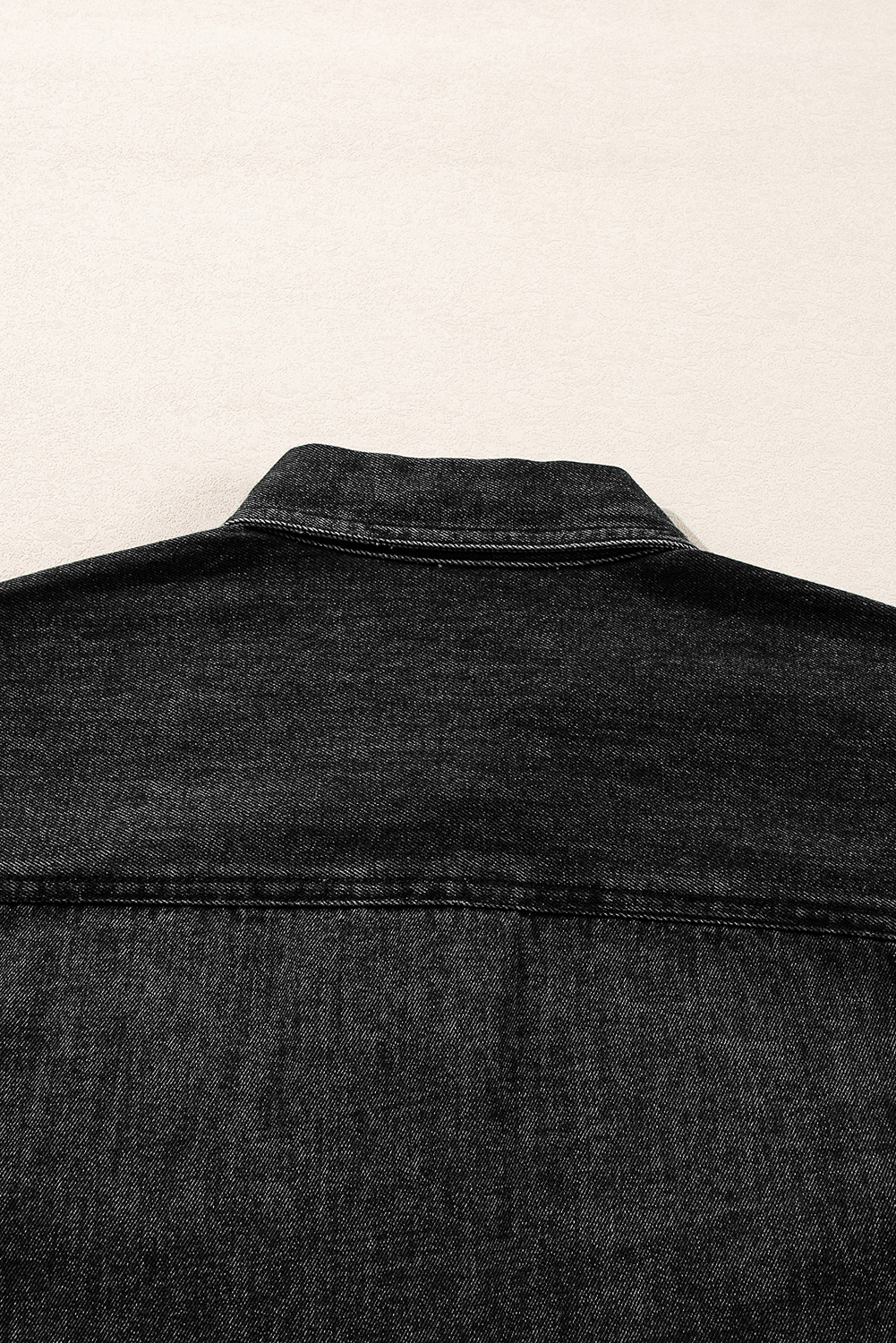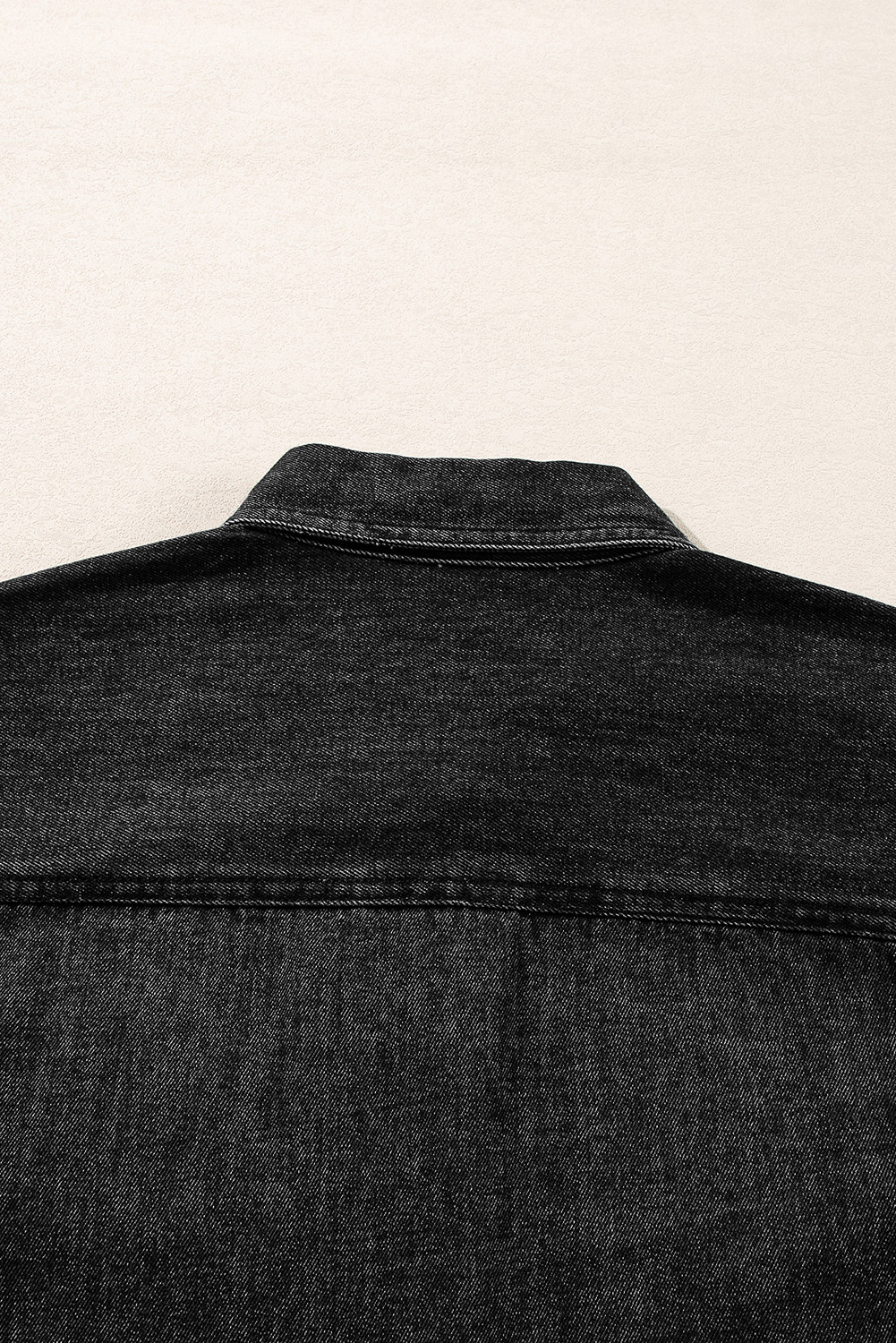 Giacca di jeans con colletto con bottoni e tasca con patta nera