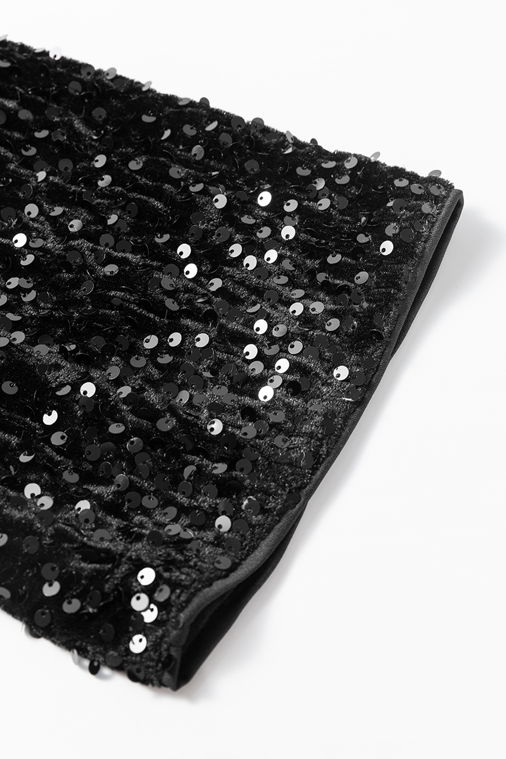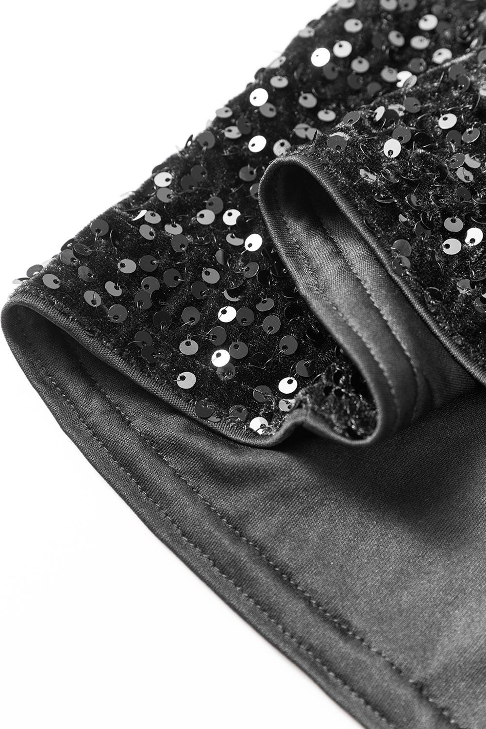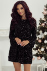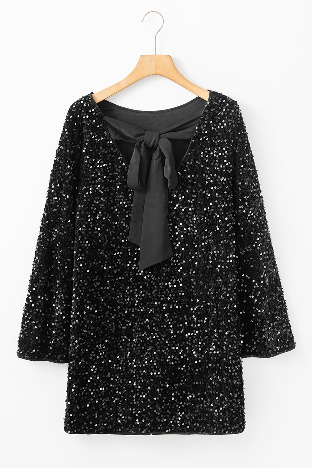 Mini abito nero con paillettes a maniche lunghe con ritaglio sul retro