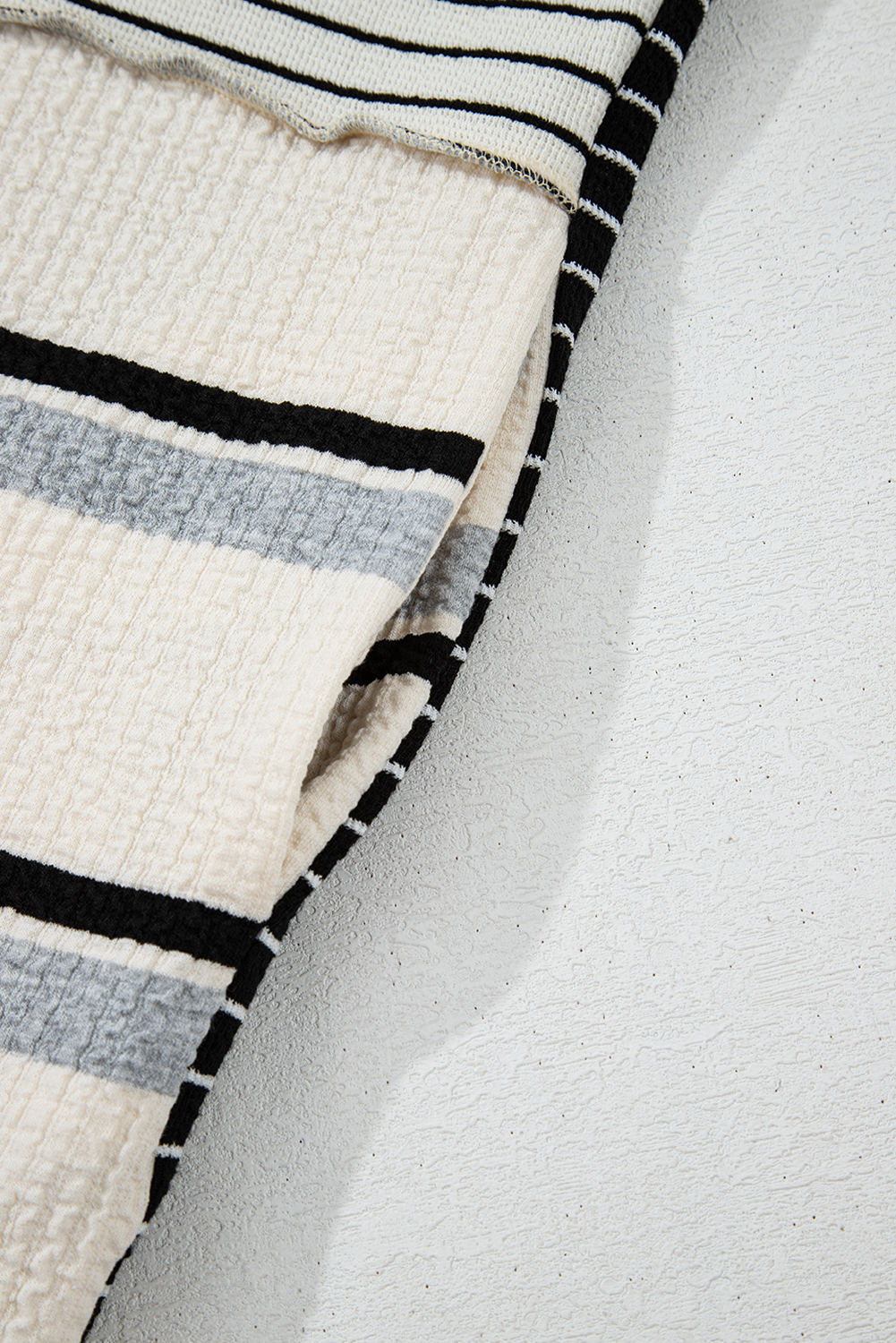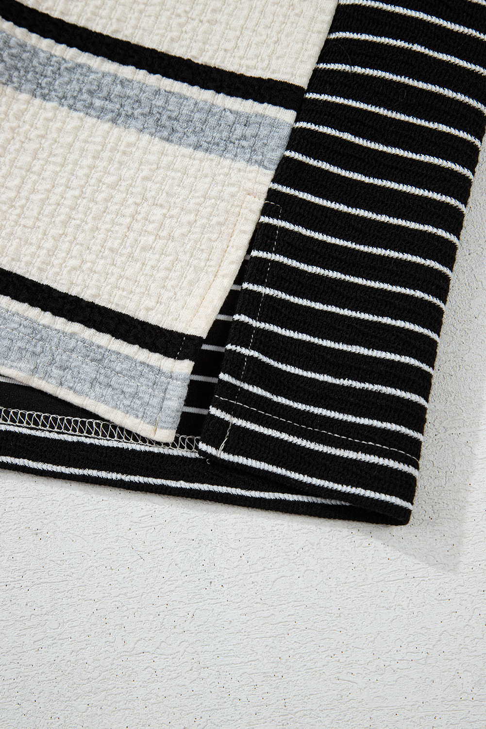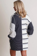 Mini abito a maniche lunghe con colletto alla coreana in maglia color block a righe nere