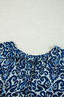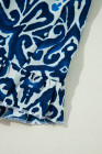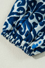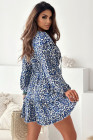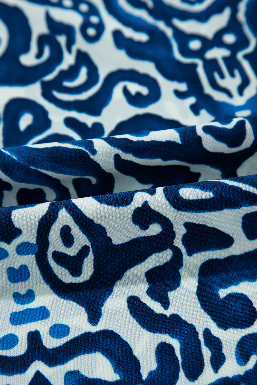 Mini abito a maniche lunghe con scollo a V con stampa vintage blu