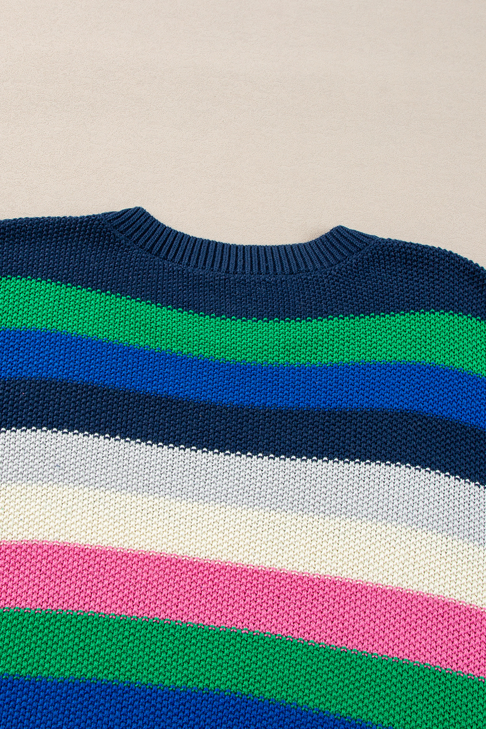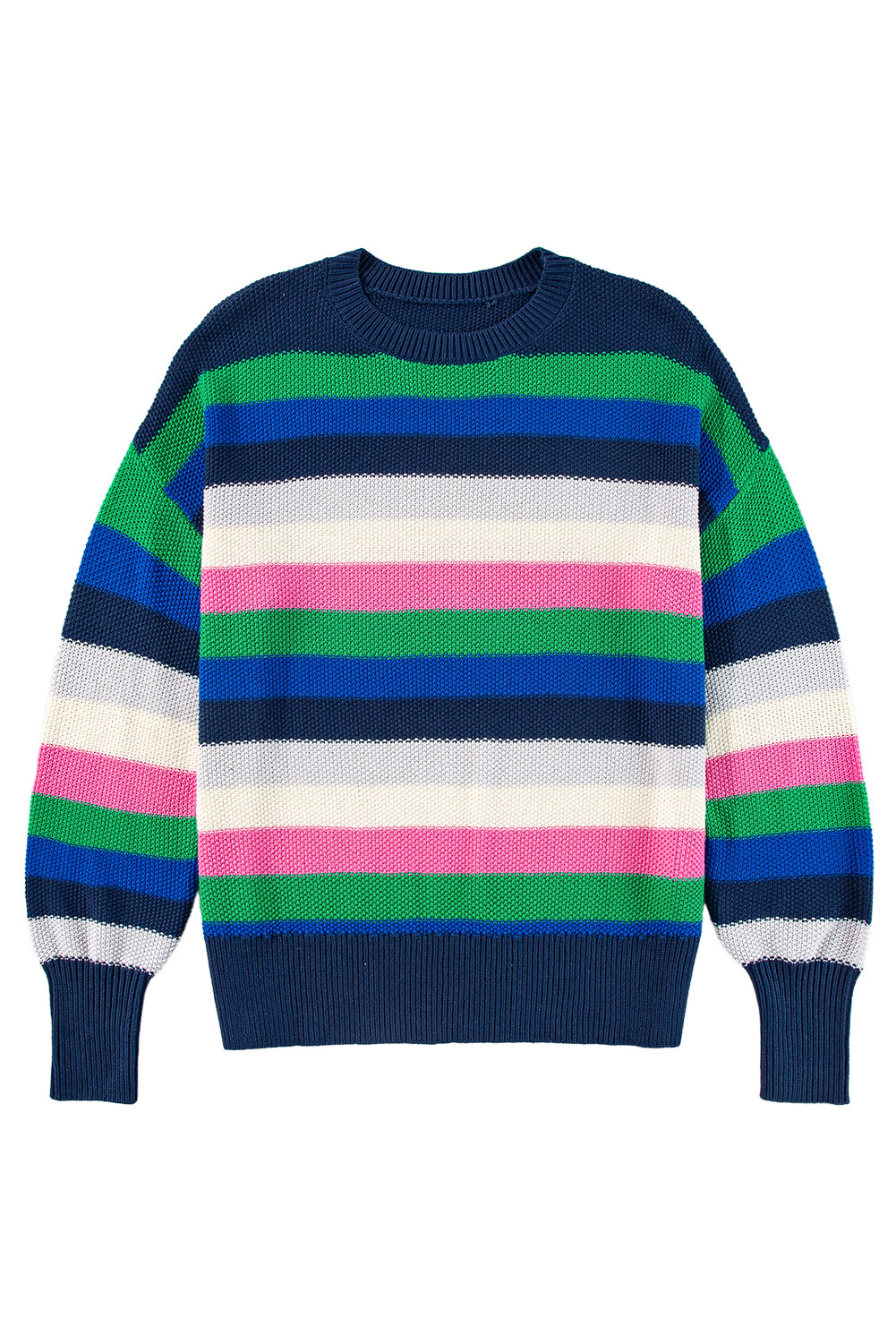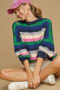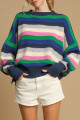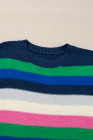 Maglione girocollo a righe arcobaleno verde brillante con spalle cadenti
