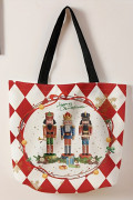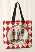 Borsa a tracolla in tela stampata con motivo a scacchi rosso fuoco "Schiaccianoci" di Natale