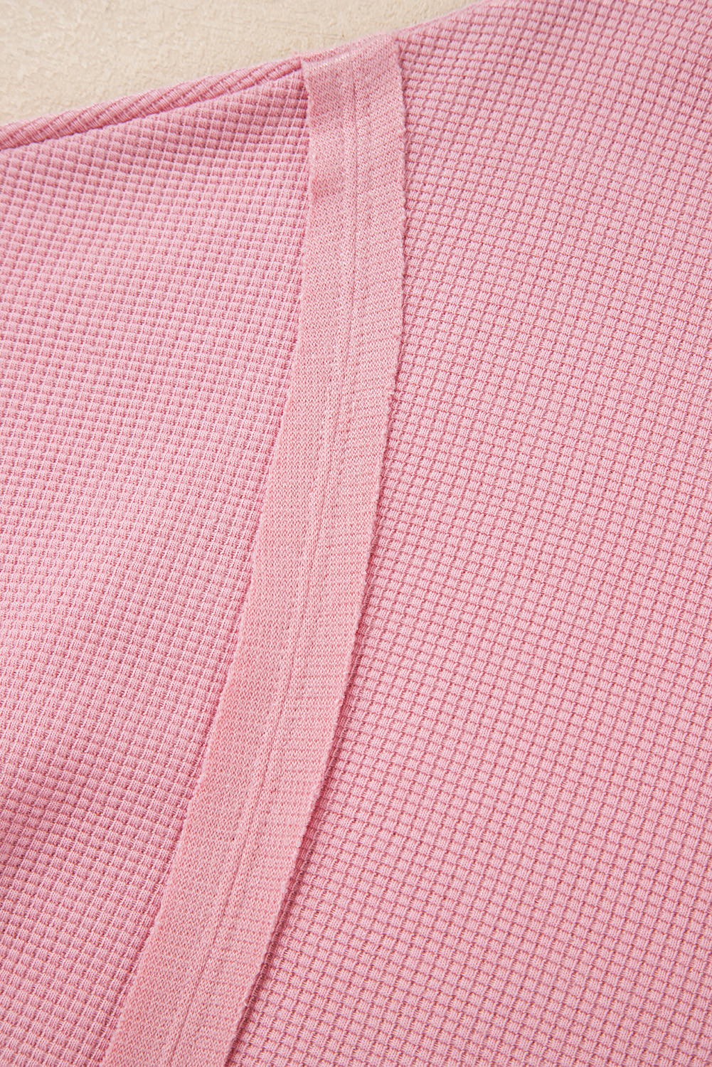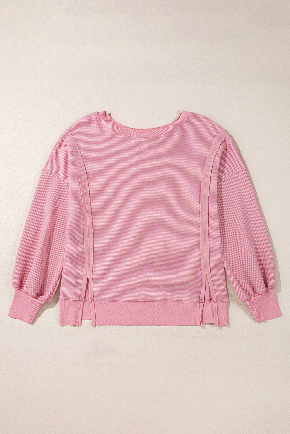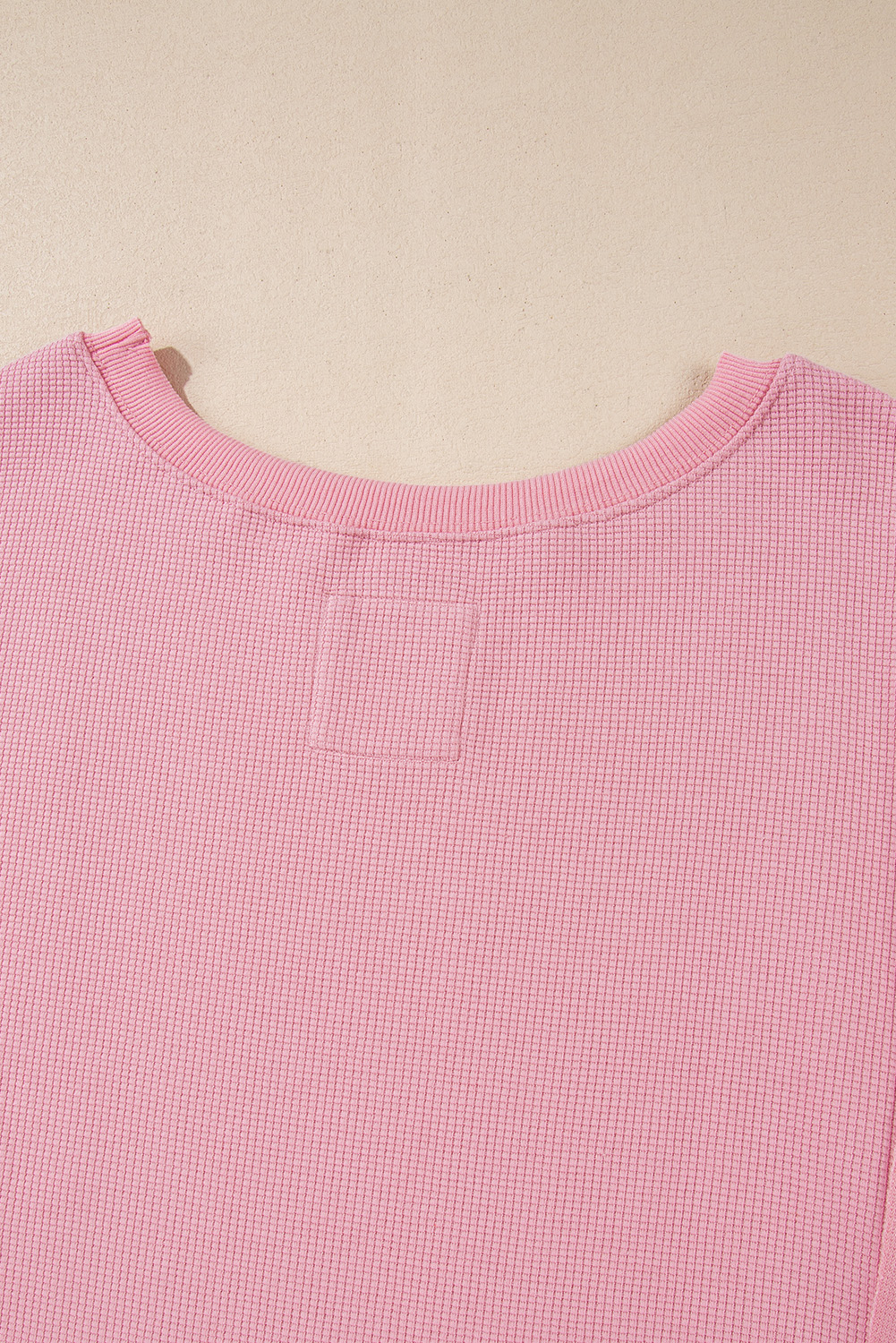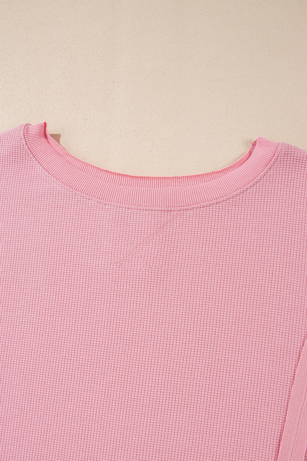 Top oversize con spacchi sulle maniche in maglia a nido d'ape rosa